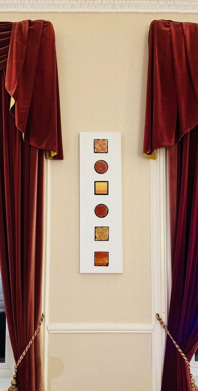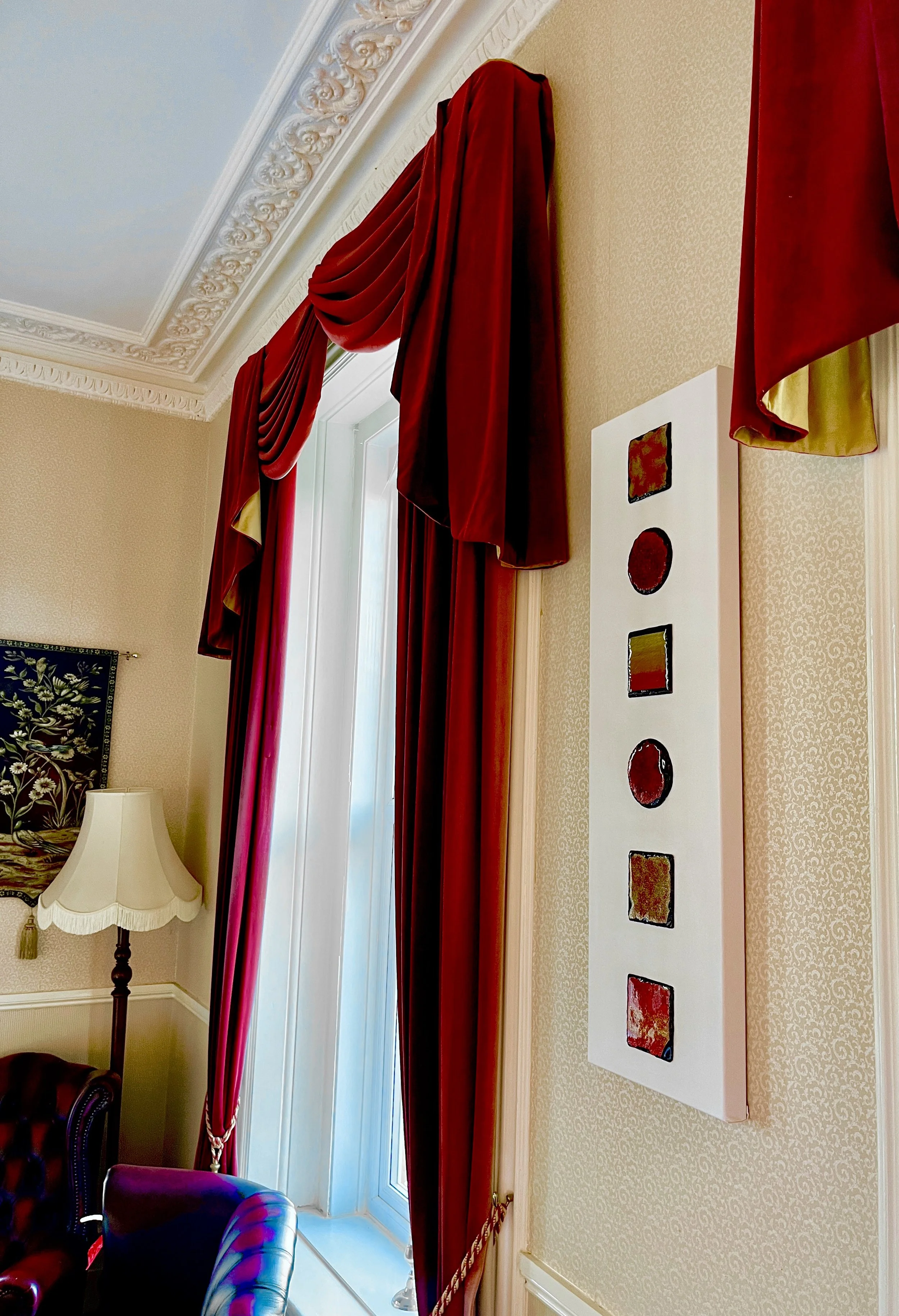 Inspired by restarting a journey, this piece beautifully compliments the red and gold tones see throughout Bourne Hall, and continues with the modern feel of Resin on Slate.